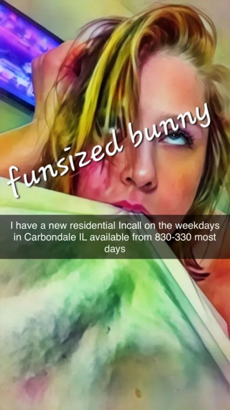 incall in carbondale , im mobile and can travel, after 1pm i can travel.and book rooms in other towns too no deposits. i will NEVER go to KY, you have to meet me in metropolis if you want me to come to Metropolis, Mount Vernon, or cape girardue you need to ask either the day before or the morning of (if we are meeting in the afternoon) text me or add me on snapchat, kayleyfinnn make sure you are adding bunny X : funsizedbunny420 OF : funsized_bunny Facebook : hunni bunny insta : fun_sized_bunny420 blsky : funsizedbunny reddit : u/Fast-Mongoose2177 I'm short (4'11) curvey and an alluring mix of sexy and cute. I'm Down to earth, I don't like drama no rushing, no clock watching i am independent ⚠ Safe play for everything. EVERYTHING ⚠ No deposits unless you expect me to drive over an hour to somewhere i dont go for someone ive never met and cannot provide references I ❤ Older Men I am disability friendly My favorite clients are the ones who approach me in a professional and respectful manner message for my menu i provide in person companionship as well as content